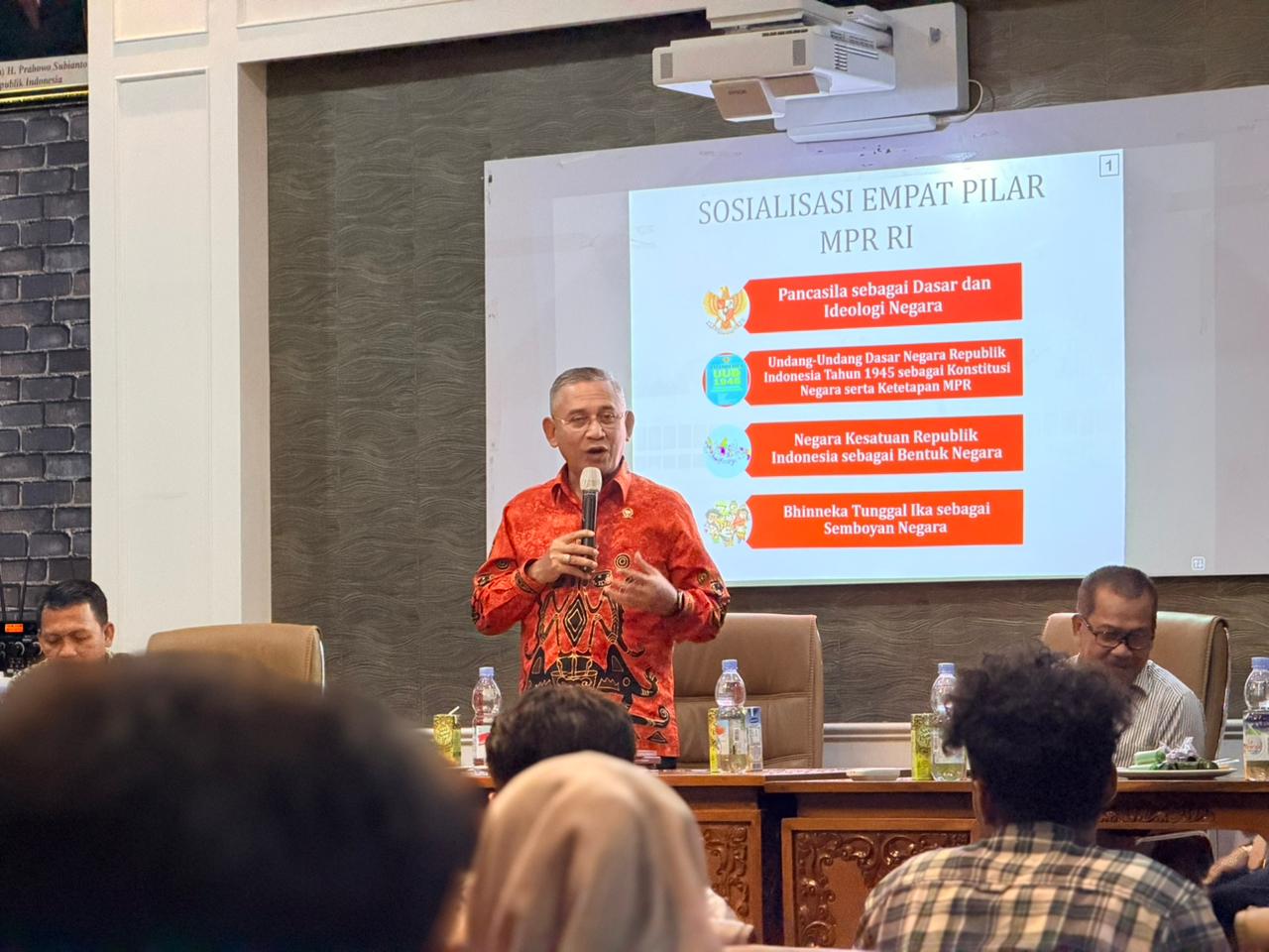 Adapun 4 Pilar MPR RI yang disosialisasikan meliputi Pancasila sebagai dasar dan ideologi negara, Undang-Undang Dasar Negara Republik Indonesia Tahun 1945 sebagai konstitusi, Negara Kesatuan Republik Indonesia (NKRI) sebagai bentuk negara, serta Bhinneka Tunggal Ika sebagai semboyan persatuan dalam keberagaman.