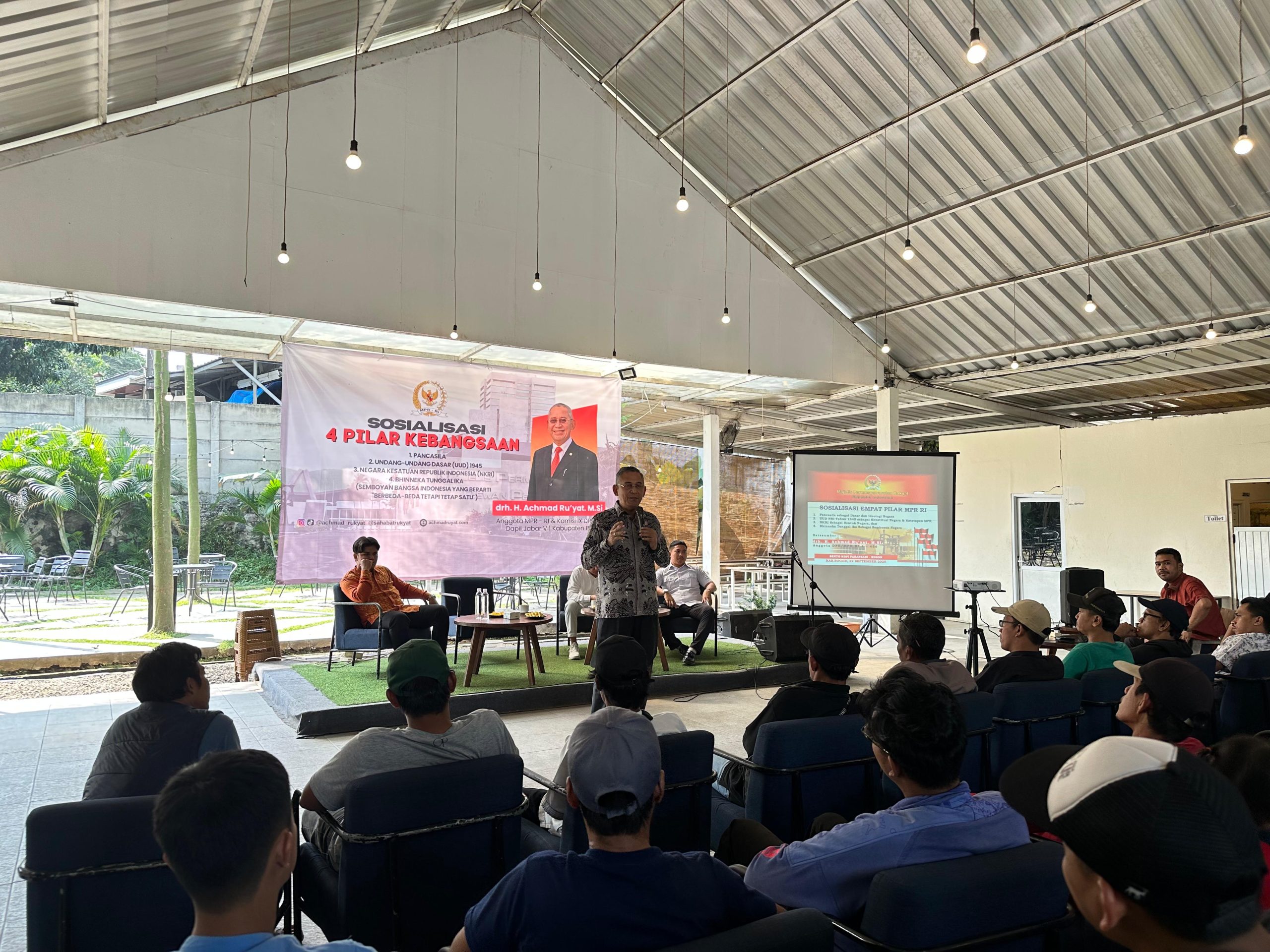 Bogor, Senin (22/9/2025) – Anggota MPR RI, drh. H. Achmad Ru’yat, M.Si, melaksanakan kegiatan Sosialisasi Empat Pilar MPR RI di Bento Kopi, Cibinong, Kabupaten Bogor. Kegiatan ini dihadiri oleh masyarakat dari berbagai wilayah, di antaranya Cibinong, Bojong Gede, Citayam, serta daerah sekitarnya. Antusiasme peserta terlihat sejak awal acara, di mana mereka menyimak materi dan aktif berdialog mengenai pentingnya pemahaman nilai kebangsaan.